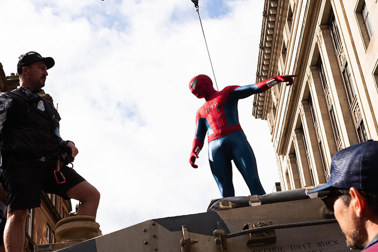 Teaser film menampilkan suit Spider-Man yang lebih “old-school” dan reflektif, menampilkan simbol laba-laba yang besar dan detail garis web yang menghangatkan tampilan baru Peter